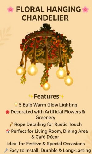 Illuminate your space with the captivating charm of this Rustic Floral Hanging Chandelier, a truly unique piece that seamlessly blends natural, organic textures with warm, inviting lighting. Designed to be a breathtaking focal point, this chandelier elevates any room by combining the cozy warmth of a farmhouse aesthetic with the vibrant beauty of a blooming…