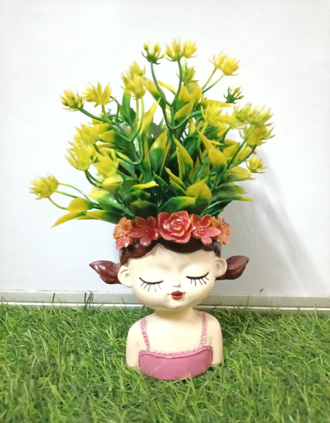 Functionality and Use: This figurine is designed to function as a mini planter or vase. It is perfectly sized for succulents, small cacti, air plants, moss arrangements, or small bouquets of faux flowers (as shown with the bright yellow blooms). The compact size makes it incredibly versatile: