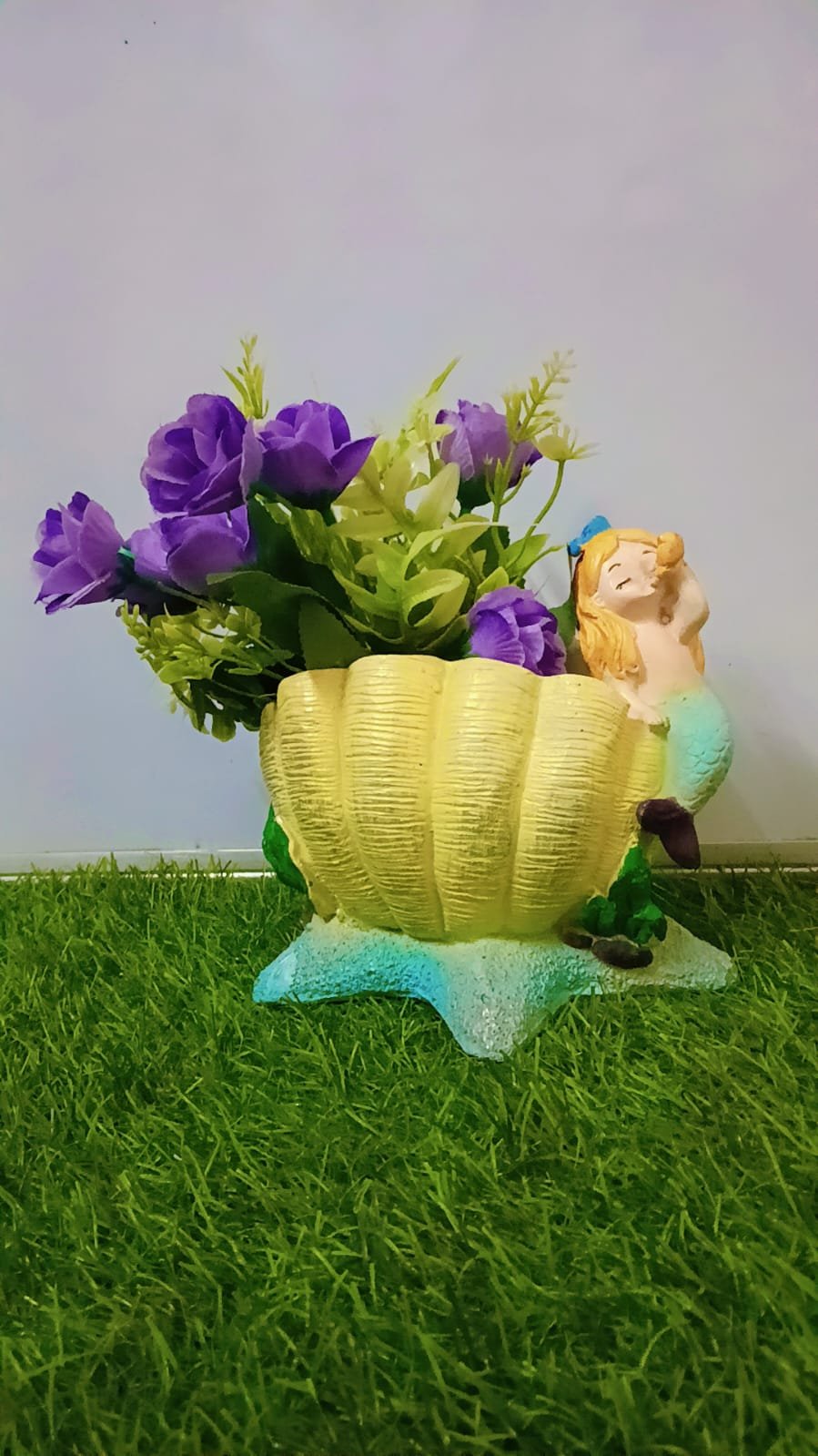 Bring a cozy, woodland aesthetic to your space with this delightful planter. It’s shaped like a textured tree log painted in warm brown tones. Peeking out is a sweet white squirrel holding a large, orange mushroom. Small red and white polka-dot mushrooms are sculpted onto the log, enhancing the forest charm. The wide, shallow opening is perfect for succulent gardens or lush small foliage, fitting perfectly into the Cottagecore style.